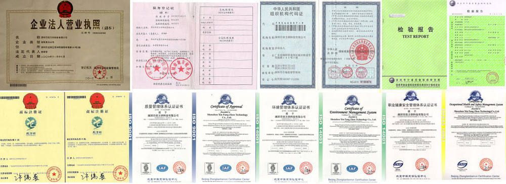 欣方圳營業(yè)執(zhí)照、稅務(wù)登記證、組織機(jī)構(gòu)代碼證,欣方圳垃圾桶檢驗(yàn)報(bào)告、垃圾桶資質(zhì),“欣方圳”注冊(cè)商標(biāo),欣方圳ISO9001:2008、ISO14001:2004、OHSAS18001認(rèn)證證書