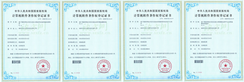 欣方圳獲得物聯(lián)網(wǎng)高新技術(shù)垃圾桶系統(tǒng)計(jì)算機(jī)軟件著作權(quán):基于物聯(lián)網(wǎng)技術(shù)的垃圾分類處理設(shè)備控制系統(tǒng)軟件、遠(yuǎn)程監(jiān)測(cè)系統(tǒng)軟件、環(huán)境監(jiān)測(cè)系統(tǒng)、智能管理系統(tǒng)平臺(tái)軟件