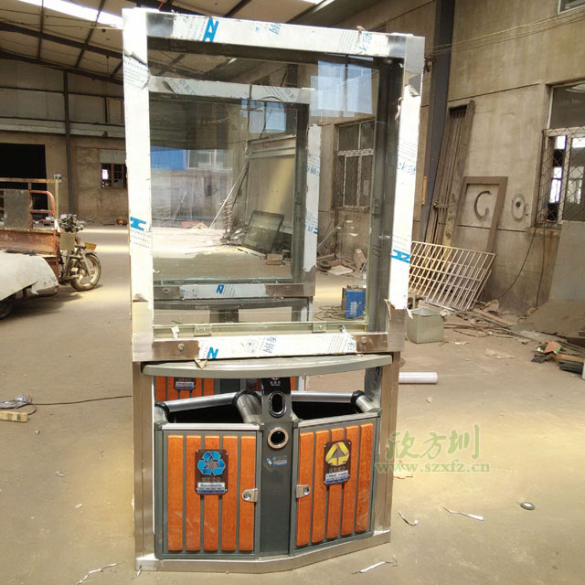 ? 不銹鋼廣告垃圾桶生產(chǎn)制作常用的材質(zhì)有冷軋鋼、不銹鋼、玻璃鋼;產(chǎn)品造型經(jīng)典時尚,整體結(jié)構(gòu)牢靠,箱體箱底連體式設(shè)計,底座可固定地上,抗打擊,抗風(fēng)力。控制箱體高度,廣告桶高度設(shè)計在1.8米左右,符合城市規(guī)劃要求。獨特的抽屜式斜插內(nèi)桶減輕環(huán)衛(wèi)工人清理勞動強度,投口與清理口一體設(shè)計,便于垃圾入箱及清理。廣告垃圾箱具有投入成本低,直接受眾效果好。