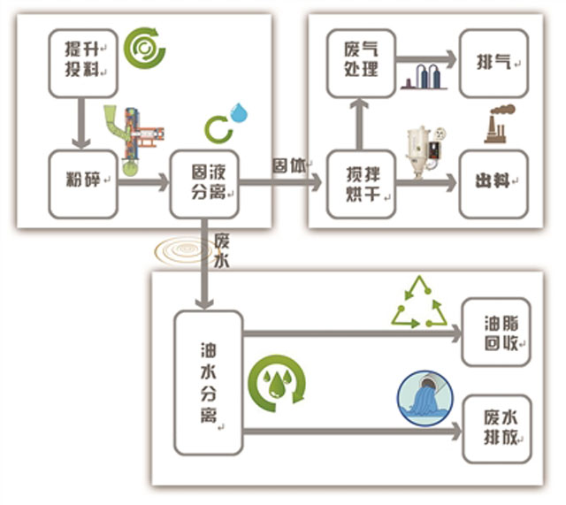 “我們學校丁蘭校區(qū)一共有師生1800余人,早中晚三餐,每天餐廚垃圾量非常大。”他說,2016年學校引進了一套設備,還專門為它建了一個垃圾房,裝了一個通道連接樓上的食堂餐廳。設備集粉碎脫水機、干燥處理系統、油水分離器、除臭系統以及投料裝置、物料輸送裝置于一體,直接源頭就地快速處理每天的餐廚有機垃圾,杜絕二次污染,做到資源回收綜合利用。