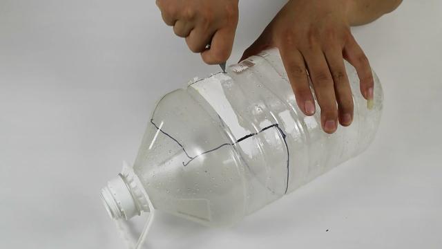 ? ? 那么今天分類垃圾桶網就用一個垃圾桶小發明,輕松解決你廚房里所有的難題,首先今天用到的道具非常簡單,只需要我們吃油剩下的油桶就可以,我們在油桶上先標記一下