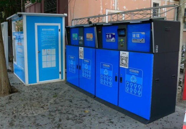 啟動儀式當天,小區內分類垃圾桶已經擺放好,分別設置了可回收物、有害垃圾、廚余垃圾、其他垃圾四類標志。此次試點工作,共在花園小區投放垃圾分類桶64個和3組智能垃圾柜。居民通過手機應用軟件掃碼,分類投放垃圾,可獲得相應積分,兌換等價商品。