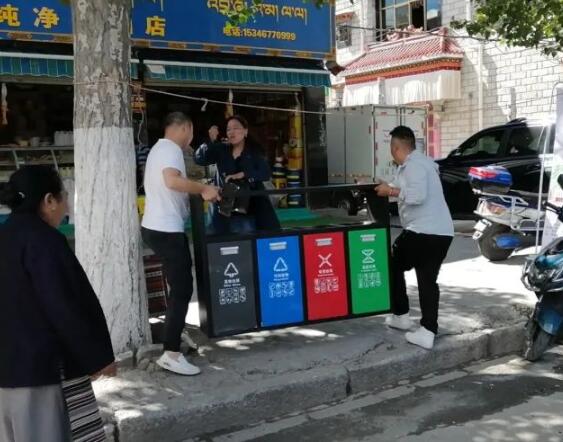 垃圾分類回收利用是處理垃圾前的重要環節。通過分類投放、分類收集等過程,把有用物資從垃圾中分離出來重新回收、利用,可以變廢為寶。比如舊書舊報紙、爛銅破鐵等回收利用后,既能帶來經濟收入,又減少了垃圾處置量。為提高轄區居民的垃圾分類意識,8月14日,阿壩林卡社區在轄區范圍內投放了十多組分類垃圾桶,號召社區居民合理投放垃圾。