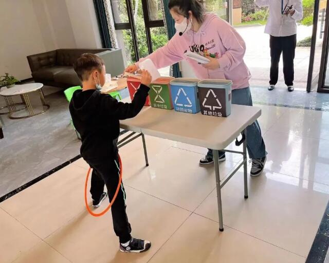 為不斷提升小區垃圾分類水平,激發美麗城鎮建設活力,龍渡社區柳岸春風小區聯合幼果之家于5月21日上午舉辦了“垃圾分類親子同行,美麗城鎮你我共建”親子活動。此次活動設有趣味問答、套圈圈、垃圾分類投放、繪畫等環節,共有10組親子參與。