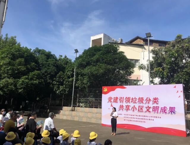 軌道地產物業公司黨支部副書記、總經理李海和嘉賓社區黨委副書記蔣鳳先后致辭,倡導黨員在推進生活垃圾分類工作中充分發揮黨組織戰斗堡壘和黨員先鋒模范作用,勇做先行者,爭當排頭兵,帶動家庭成員和身邊群眾樹立“垃圾分類,從我做起”的理念。