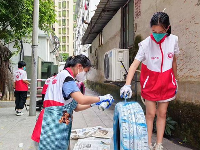 本次活動劃分為垃圾分類游戲攤位組、輪胎噴漆組、種植組、公園清掃組4個組別開展服務。垃圾分類游戲攤位組通過設置體驗式的游戲攤位活動。讓社區居民在輕松有趣的游戲中深化對垃圾分類的認識。輪胎噴漆組則負責賦予廢舊輪胎新面貌,讓輪胎盆栽種植增添色彩。公園清掃組負責社區環境衛生保潔,他們拿起掃把,清理社區里散亂垃圾,讓社區花園煥然一新。種植組則是整場活動最繁忙、最亮麗的風景線,他們搬運泥土、除草、種植、澆水、施肥,通過拼裝花箱、花架和堆肥箱,將一片片小空地打造得豐富多彩。