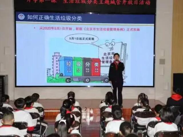 北京市城管執(zhí)法局、朝陽(yáng)區(qū)城管執(zhí)法局、勁松街道在陳經(jīng)綸中學(xué)帝景分校聯(lián)合開(kāi)展“開(kāi)學(xué)第一課”生活垃圾分類主題城管開(kāi)放日活動(dòng)。