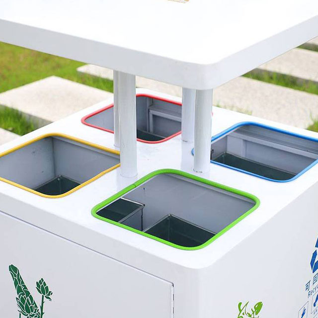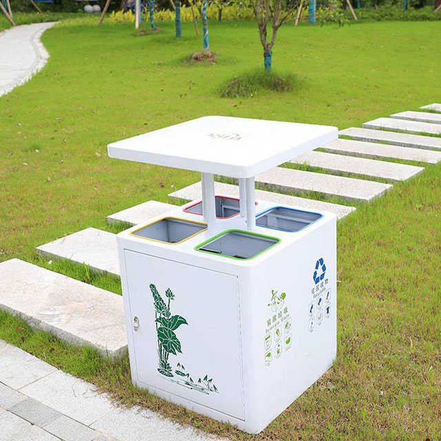 垃圾桶內部精準劃分成可回收物、有害垃圾、廚余垃圾和其他垃圾四個區域。在公園中,游客可以輕松地將喝完的飲料瓶、廢紙殼等可回收物放入相應區域,讓資源得到循環利用;將廢舊電池、過期藥品等有害垃圾妥善投放,避免對環境造成污染;野餐產生的食物殘渣歸入廚余垃圾區;用過的紙巾、煙蒂等其他垃圾放入對應的位置。清晰明了的分類標識搭配彩繪圖案,讓垃圾分類變得簡單易懂,即便是小朋友也能輕松掌握。