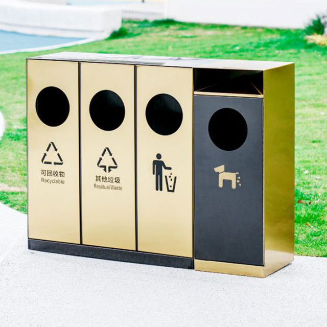 公園的環保先鋒電鍍不銹鋼四分類垃圾桶