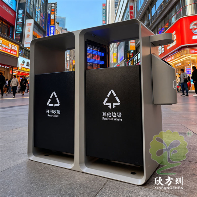 與滅蚊燈的“主動防御”相對應,定制化的不銹鋼分類垃圾桶,則靜默地丈量著一座城市的文明高度。它們不再是功能單一的“廢物容器”,而是集實用性、美觀性與教育性于一體的城市家具。