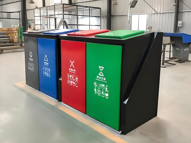 定制分類垃圾箱可根據社區所在地的垃圾分類標準進行分區設計。清晰的標識系統是關鍵——除了醒目的顏色區分(如藍、綠、紅、灰),還可添加圖文并茂的投放指南,即使老人和孩子也能輕松理解。考慮到不同垃圾產生量,各分類箱的容量比例可以調整,例如廚余垃圾箱可適當增大容量,而有害垃圾箱則相對較小但結構更安全。