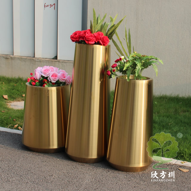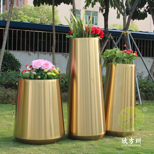 一、室內商場拉絲鈦金不銹鋼花盆組合的優點有哪些