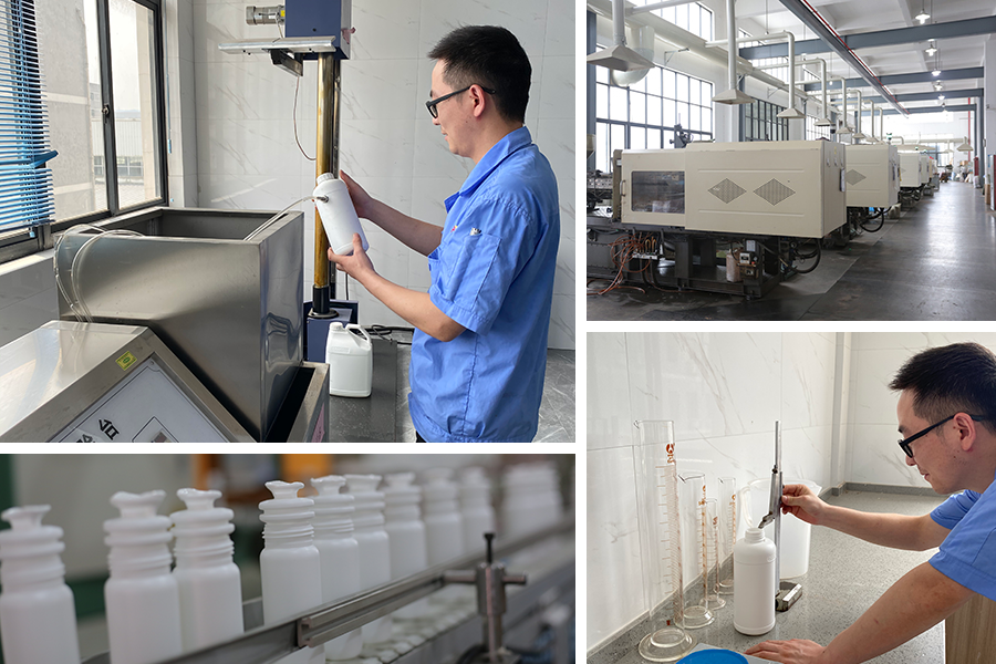 我公司所生產的多層復合高阻隔瓶是一種以高密度聚乙烯做基層,選用了阻隔有機溶劑——最優質的合成聚合物做內層,與中層粘結樹脂粘合而成的高科技產品,它能有效克服單層PE瓶對有機溶劑易滲透、易變形和單層PET瓶易吸水、不耐DMF、不耐高溫等缺點。除此之外高阻隔瓶還具有高效的氣體阻隔性,不僅能夠阻隔氧氣,還能夠有效的阻隔空氣和被包裝物所散發出的氣味(如農藥的化工品的異味、食品、化妝品的香味)。
