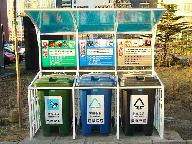 目前,戶外小區三分類收集站是城市生活垃圾處置的主流趨勢,也是現代城市文明進步的標志之一,有利于提升垃圾清運效率,便于再生資源的回收利用,減少環境污染,緩解環衛工人常規保潔的壓力。垃圾分類亭,分為地基基礎設施、公益宣傳欄、立柱、頂棚等,亭內設置可回收、有害垃圾、廚房垃圾和其他垃圾等垃圾桶,垃圾桶及宣傳欄配有垃圾分類的宣傳標語,廣大群眾可以根據垃圾桶的提示標語,將廢棄的生活垃圾投放到對應的垃圾桶中。