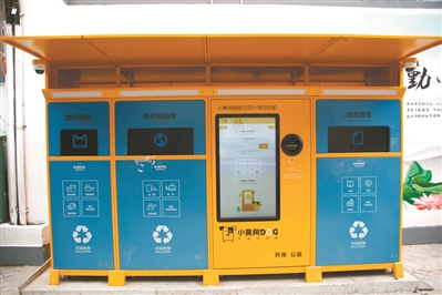 在白云區三元里街梓元崗社區,近日每天都有住戶提著各色廢品下樓去“喂小黃狗”。原來,這是梓元崗社區引進的“小黃狗”智能垃圾分類回收設備,居民按指示“喂入”廢紙、舊衣物、塑料瓶子等廢棄可利用的垃圾,經過自動計價后,手機上就能收到相應的環保金返還。