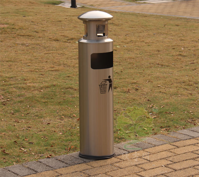 ? C-620圓形煙灰柱垃圾桶采用優質不銹鋼剪切、組裝、焊接、絲印而成,不銹鋼具有很好的堅固耐用,防水防銹,時尚美觀作用。它包括外套管、煙灰投放口、內筒、煙灰盒。外套管的底端固定連接在支座上,外套管的側壁上設有煙蒂置入口,內套管用于集中收納從外套管的煙蒂置入口投入的煙蒂,內套管設在外套管的內管腔中,內內套管的開口端朝上,煙蒂置入口與內套管的開口相連通,以使得從煙蒂置入口投入的煙蒂可從內套管的開口端落入到內套管的內管腔中;