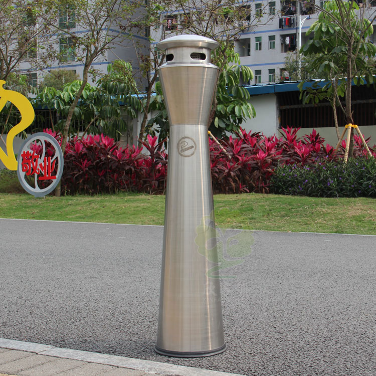 生產(chǎn)廠家推薦圓柱式滅煙柱采用優(yōu)質(zhì)不銹鋼剪切、組裝、焊接、絲印而成,它包括外套管、支座、內(nèi)套管、煙灰盒、底座。外套管的底端固定連接在支座上,外套管的側(cè)壁上設(shè)有煙蒂置入口,內(nèi)套管用于集中收納從外套管的煙蒂置入口投入的煙蒂,內(nèi)套管設(shè)在外套管的內(nèi)管腔中,內(nèi)內(nèi)套管的開口端朝上,煙蒂置入口與內(nèi)套管的開口相連通,以使得從煙蒂置入口投入的煙蒂可從內(nèi)套管的開口端落入到內(nèi)套管的內(nèi)管腔中;