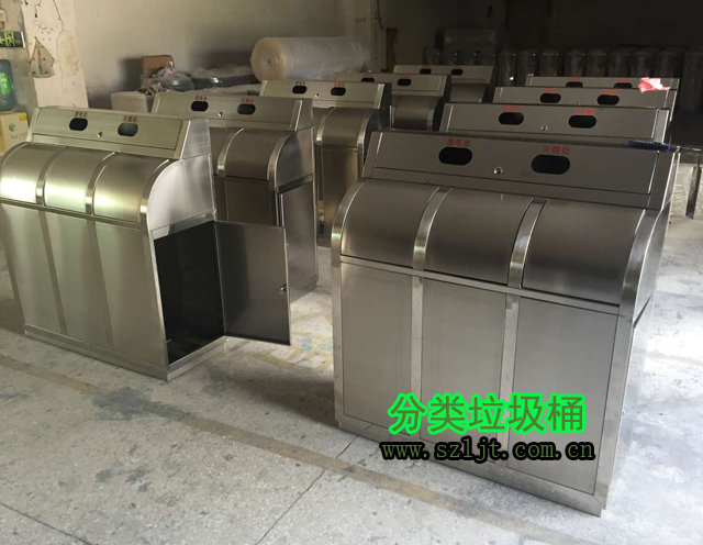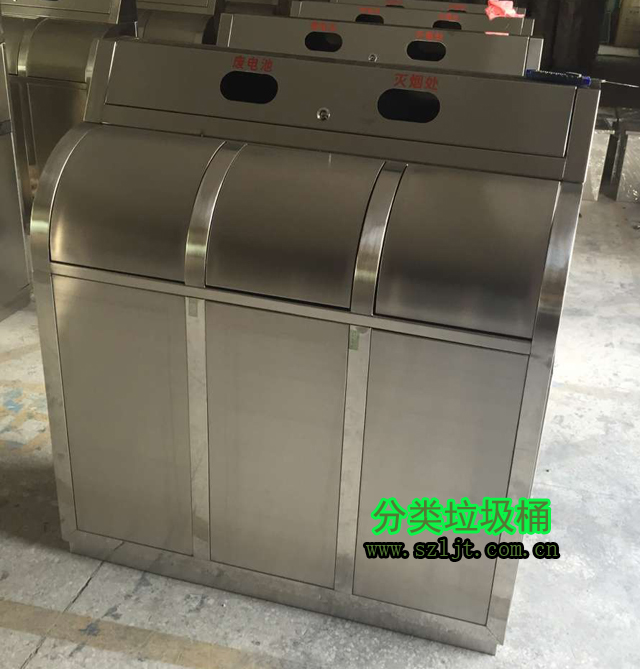 小社區(qū)物業(yè)不銹鋼分類垃圾桶型號xfz-c210,規(guī)格900*400*890。此垃圾桶各種小細節(jié)十分講究,根據小區(qū)社區(qū)這種特定環(huán)境量身定制。全桶由可回收垃圾、不可回收垃圾、廚余垃圾分類組成。里面附帶鍍鋅內膽,可從桶身兩側取出放進。桶蓋是推蓋式,上方還有煙頭、電池兩個收集盅。