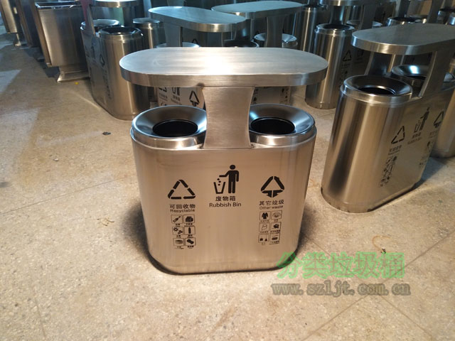 【產品顏色】:以不銹鋼材質本色為底色,絲印的圖案用黑河表示,分別代表可回收物也其他垃圾兩大類;顏色對比鮮明和諧,簡潔大方,實用美觀,還可根據客戶需求定制。