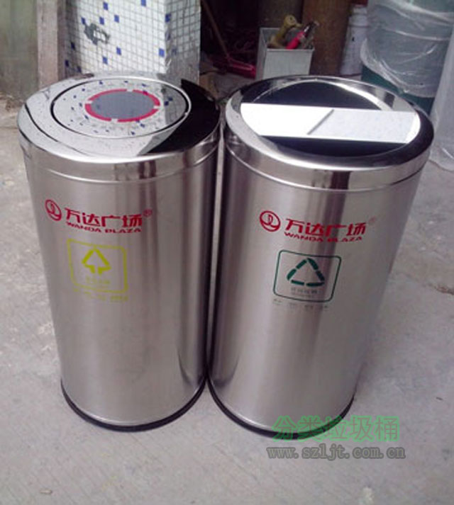 【產品顏色】:以不銹鋼材質本色為底色,絲印的圖案用黃綠兩色表示,分別代表可回收物也其他垃圾兩大類;同時還絲印上客戶的標志,顏色對比鮮明和諧,簡潔大方,實用美觀,還可根據客戶需求定制。