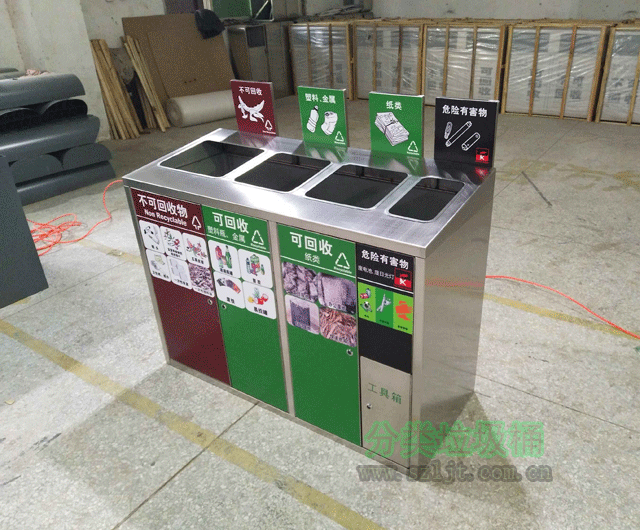 C502不銹鋼戶外分類環保垃圾桶是一款適用于小區、社區、學校、工廠、宿舍等戶外場所的四分類垃圾桶。這款垃圾桶分為不可回收物、塑料金屬、紙類、有害物四大類。這種分類方式的科學之處在于,在我們的生活當中,塑料、金屬、紙類是我們能大量產生的有回收價值的垃圾。塑料、金屬、紙類的回收價值非常高,一頓塑料回收可以得到0.7噸新的塑料,一頓鋁制飲料罐可以回收0.7噸鋁塊,一頓廢紙回收可以少砍30棵成年大樹。而有些有害垃圾對環境的破壞非常之大,比如廢棄電池、油漆、電燈泡、藥品,它們對土地水源的污染往往會持續上百年也不能輕易清除,所以對它們進行單獨分類,用特殊正確的方法正確處理非常必要。