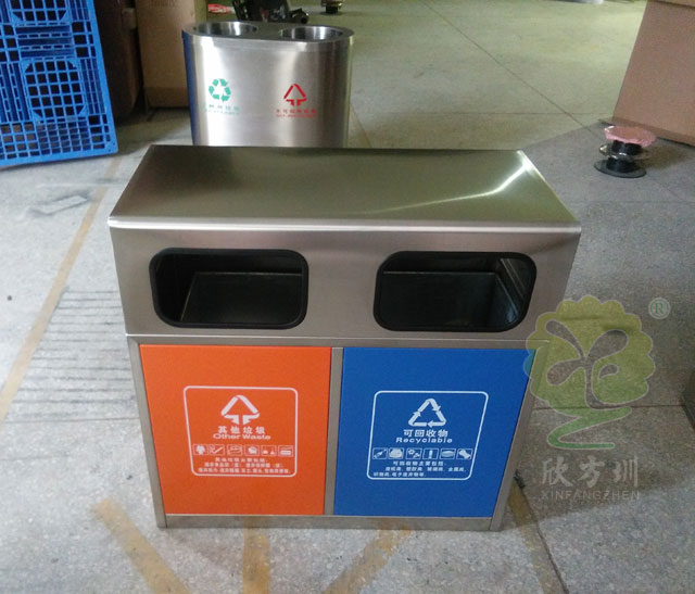 戶外環保不銹鋼分類垃圾桶由欣方圳設計生產銷售,使用優質304不銹鋼為原材料。物美價廉,質量高檔,外表時尚,量大價格還有優惠,歡迎大家前來咨詢。