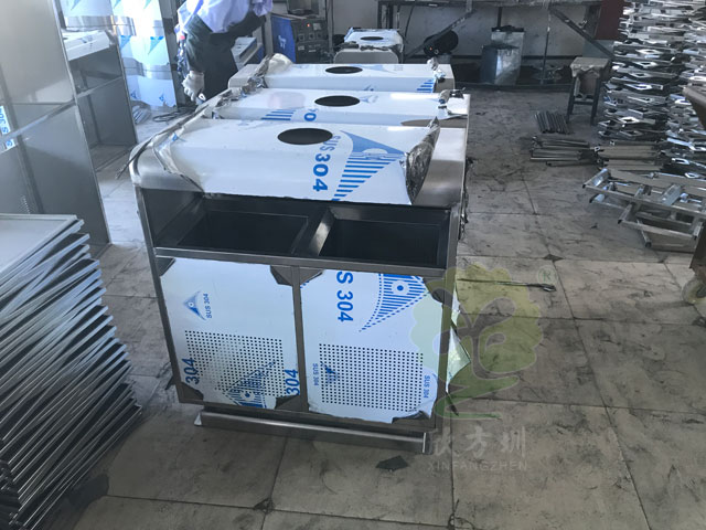 戶外方形不銹鋼環保分類垃圾桶生產過程: