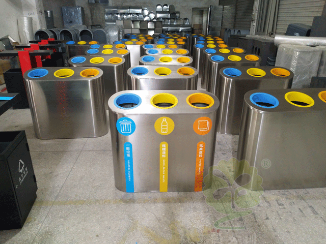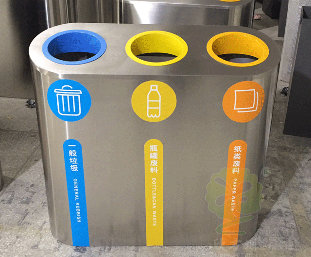 這款垃圾桶采用三分類形式,分別收集一般垃圾,瓶罐廢料,紙類廢料,瓶罐和紙類是具有重大回收價值的可回收垃圾,對它們進行分類回收,可以節約資源,保護環境,有利于國家綠色環保事業的推進。據了解,一頓塑料瓶可以可以回收0.75噸原料,一頓廢紙回收可以生產成品紙0.8噸,相當于少砍伐20棵樹齡為30年的樹木。每個人都有義務做好垃圾分類,為自己的綠色家園做出點點滴滴的貢獻。