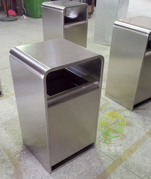 卓越品質(zhì)、精湛工藝‘、時尚外觀是XFZ-C355室內(nèi)方形不銹鋼垃圾桶的優(yōu)點(diǎn),它以優(yōu)質(zhì)303#不銹鋼剪裁、組裝、焊接而成,卻渾然天成、嚴(yán)絲合縫、看不到一點(diǎn)縫隙和焊接痕跡。完美的折彎曲線非常考驗(yàn)制作工人的手藝,這種曲線不僅僅代表了美的藝術(shù),更是實(shí)際使用過程中積累的智慧與經(jīng)驗(yàn)結(jié)晶。它能很好的防止人群磕傷碰傷,保護(hù)附近人流的安全。加厚的桶身讓垃圾桶更加的堅(jiān)固耐用,看起來更高檔更有質(zhì)感,這種高檔優(yōu)質(zhì)的外形讓它非常適合擺放于辦公樓、酒店大堂、商場等奢華場所。桶底配有防滑墊,無需使用螺絲就能起著很好的固定作用,還能防止地面刮花,專門為室內(nèi)場所設(shè)計(jì)。