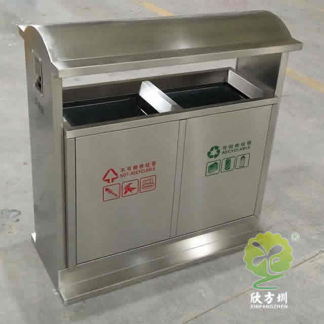 戶外社區不銹鋼分類垃圾箱是欣方圳設計生產的一款經典熱銷垃圾桶,這款垃圾桶雖然使用不銹鋼制作而成,但是外形采用了仿木設計,使其看起來有一股自然不銹鋼本色氣質,特別適合各種歷史景區、戶外公園、別墅小區、學校廣場等場景使用。這款不銹鋼垃圾桶外表經過防腐工藝處理,防水防腐蝕、經久耐用、工藝精湛、物美價廉。如果你對這款垃圾桶感興趣,請直接聯系我們報價。