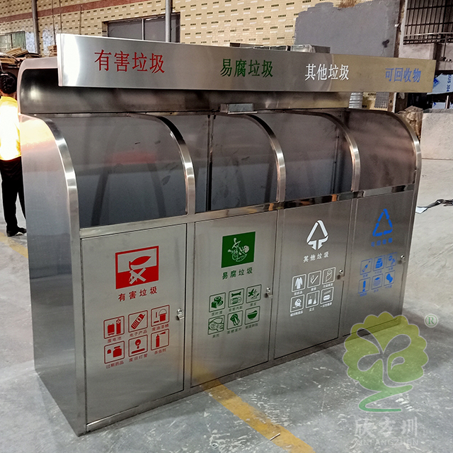 戶外小區大容量四分類不銹鋼垃圾箱型號:C707-2,采用201#,202#,304#優質不銹鋼材料模壓成型,堅固耐用,不易破損;耐火安全,抗高低溫,適合各種惡劣氣候條件;金屬亮澤,高雅美觀,廣泛適用于各種機場、商場高檔場所;內外表面光潔,減少垃圾殘留,易于清潔;配置鍍鋅板內桶,便于垃圾清倒;激光切割開料,尺寸精準,投口無縫焊接成型,打磨拋光處理圓滑不割手,欣方圳不銹鋼分類垃圾桶制作師傅有著多年經驗的熟手,每一道環節工藝成熟,質量可靠,確保客戶如期交付驗收。