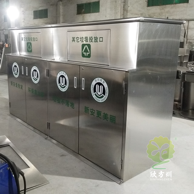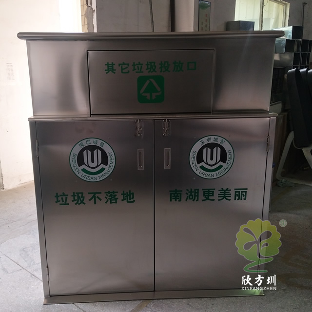 深圳城中村戶外大容量不銹鋼垃圾箱是欣方圳設計生產的一款經典高檔垃圾桶,這款垃圾桶雖然使用不銹鋼制作而成,但是外形采用了不銹鋼本色方形分類處理,使其看起來有一股自然不銹鋼鋼鐵氣質,特別適合各種室外物業小區、城中村、社區等場景使用。這款不銹鋼垃圾桶外表經過防腐工藝處理,防水防腐蝕、經久耐用、工藝精湛、物美價廉。如果你對這款垃圾桶感興趣,請直接聯系我們報價。