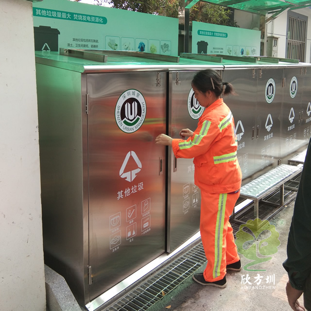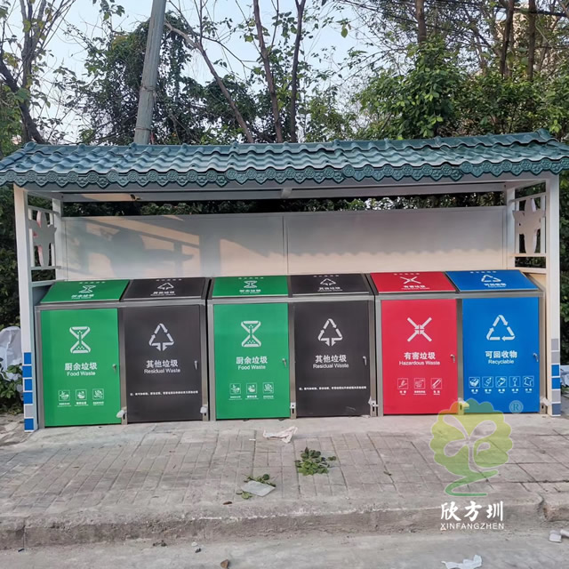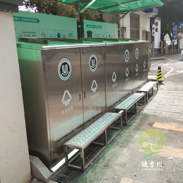 戶外大型不銹鋼垃圾分類屋一種存放垃圾的容器,可以采用201、304、316等不銹鋼制作,表面可以采用烤漆、噴塑、鏤空、UV打印等工藝處理,因為不銹鋼耐空氣、蒸汽、水等弱腐蝕介質和酸、堿、鹽等化學浸蝕性介質腐蝕,所以不銹鋼垃圾桶耐用性高。全身不銹鋼制作的垃圾桶還具有防火功能,堅固耐用。