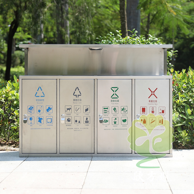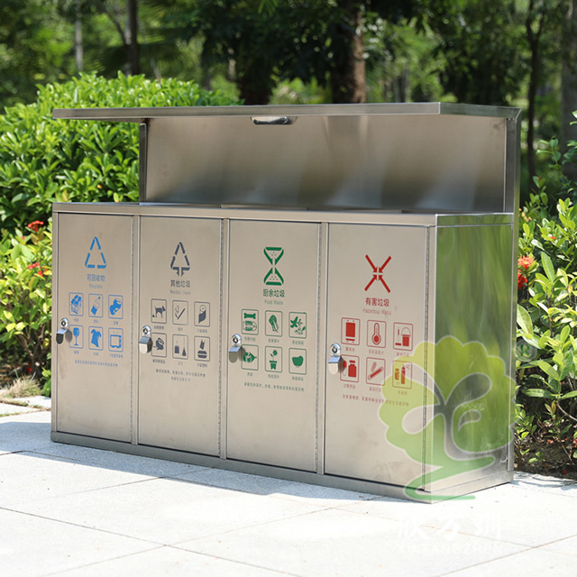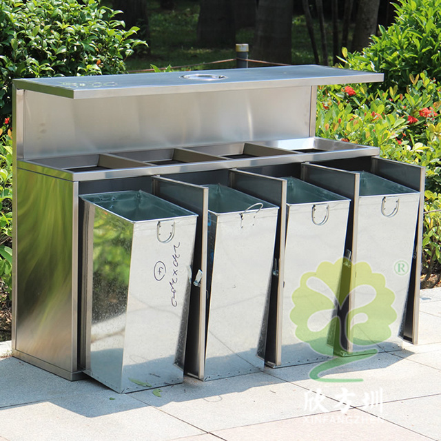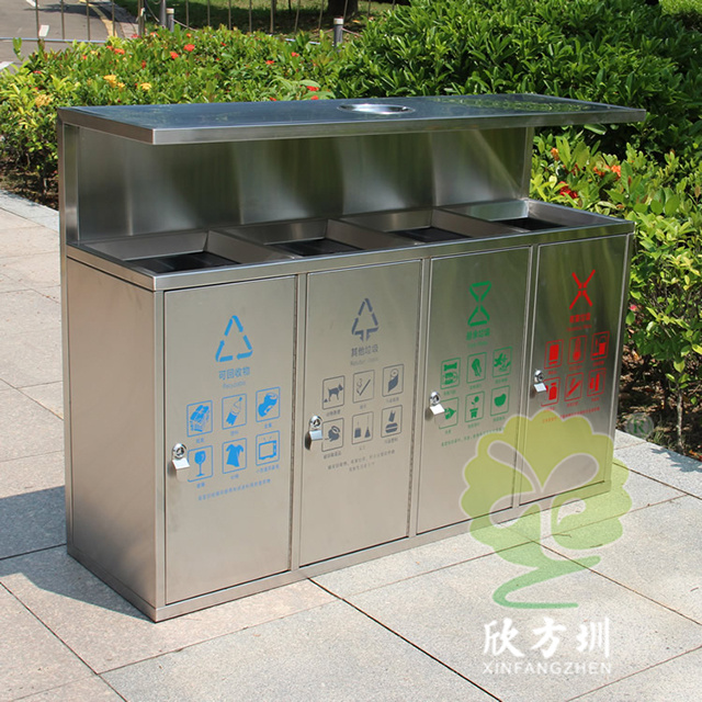 戶外市政街道四連體不銹鋼垃圾箱是欣方圳設計生產的一款經典熱銷垃圾桶,這款垃圾桶雖然使用不喜歡制作而成,但是外形采用了方形單筒,使其看起來有一股自然大方氣質,特別適合各種歷史景區、戶外公園、別墅小區、學校廣場等場景使用。這款垃圾桶外表經過防腐工藝處理,防水防腐蝕、經久耐用、工藝精湛、物美價廉。如果你對這款垃圾桶感興趣,請直接聯系我們報價。