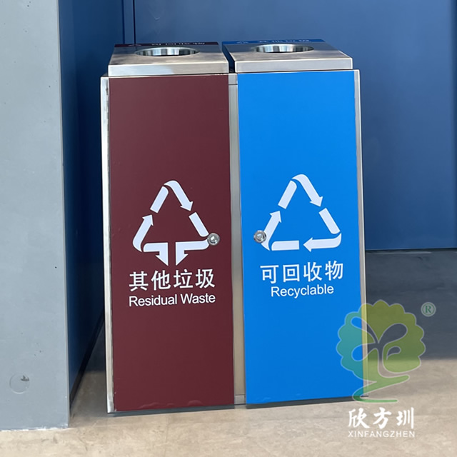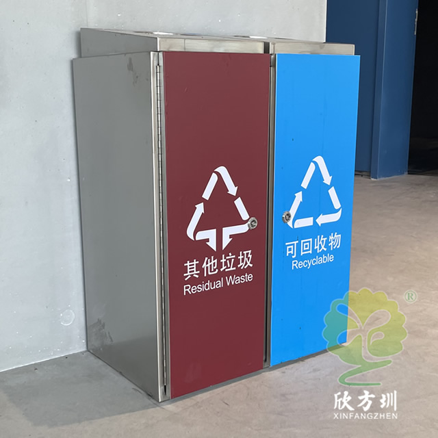 室內直投口方形連體不銹鋼分類垃圾桶產品詳情: |