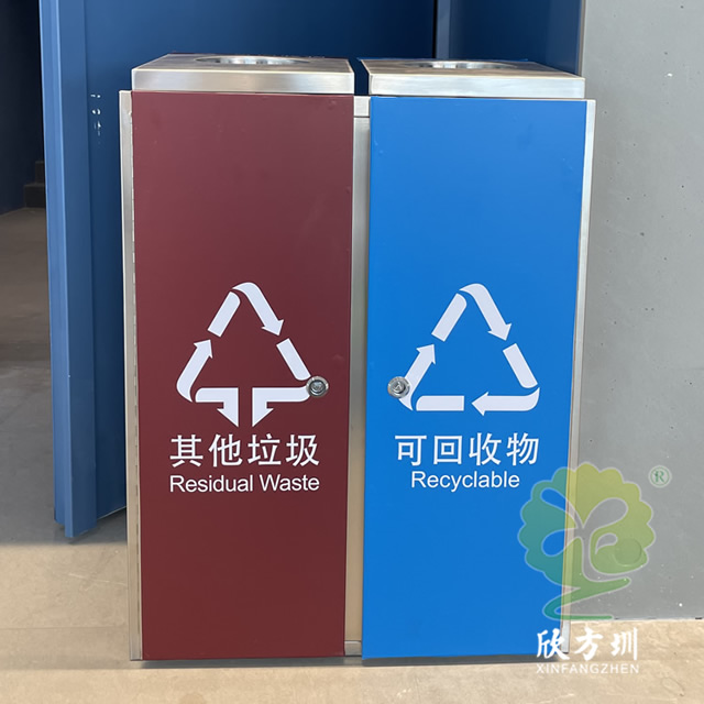 室內直投口方形連體不銹鋼分類垃圾桶