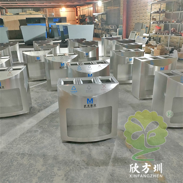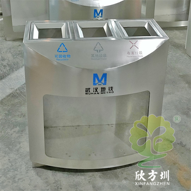 武漢地鐵站室內透明三分類不銹鋼垃圾桶