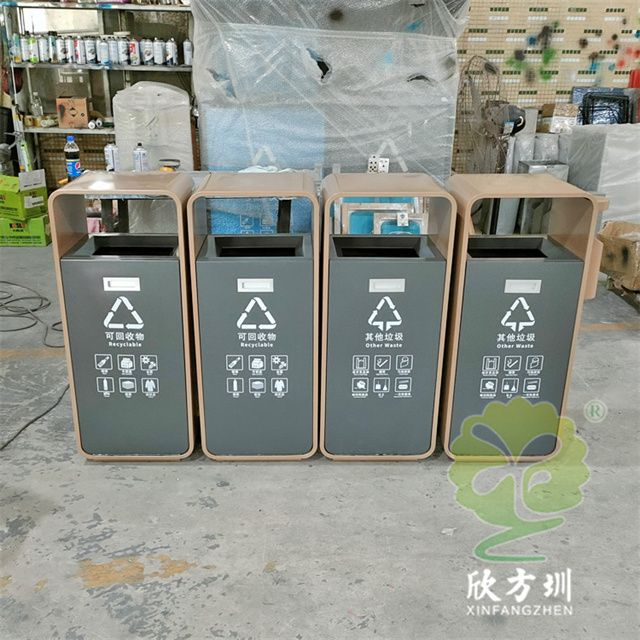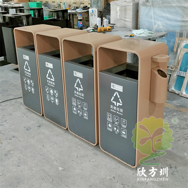 廣東松山湖環(huán)衛(wèi)不銹鋼分類垃圾桶外筒201不銹鋼1.2mm電鍍,內(nèi)部噴粉烤漆,可以定做尺寸跟顏色,翻到方便清理桶內(nèi)廢物,可以定制絲網(wǎng)印刷最新國標(biāo)分類標(biāo)識和企業(yè)logo,側(cè)面有一個(gè)煙灰盅,4個(gè)桶內(nèi)部通過螺絲連接。