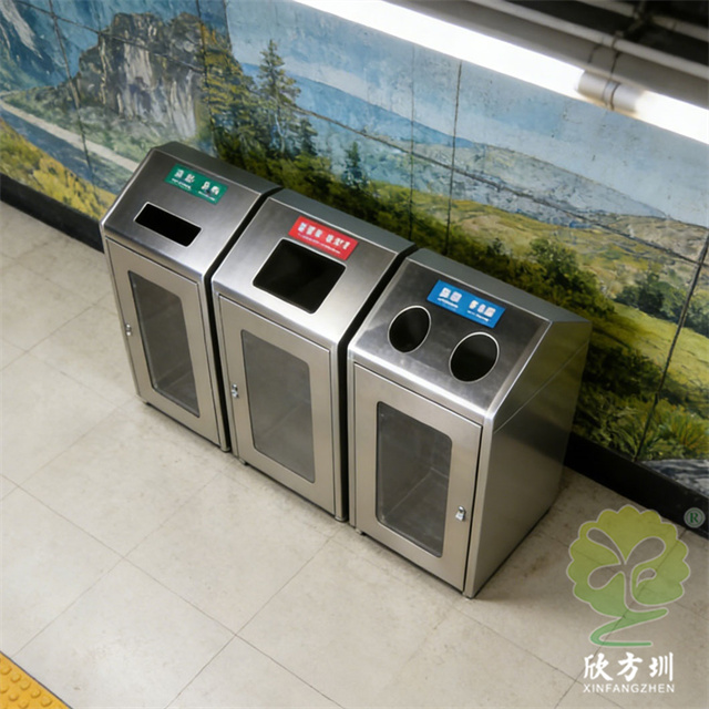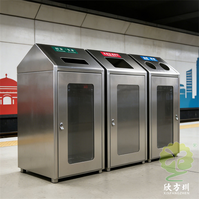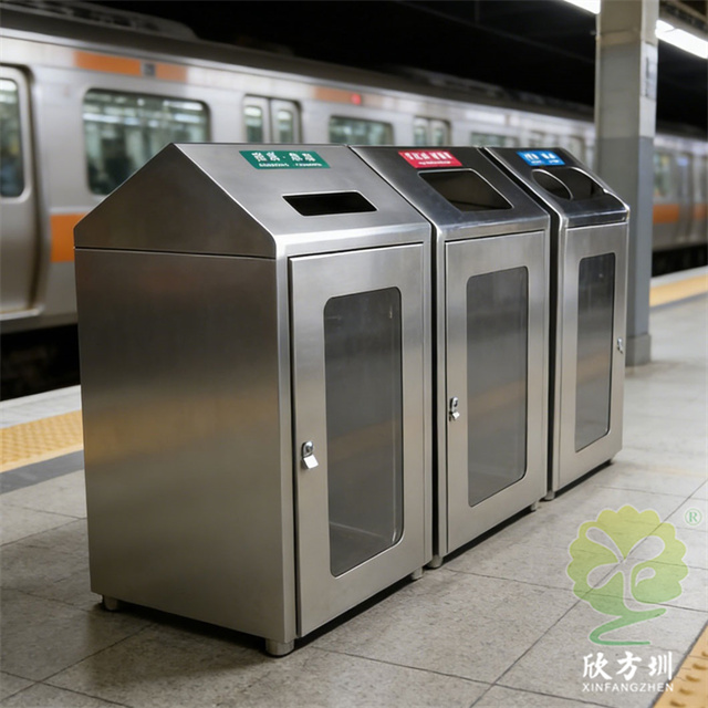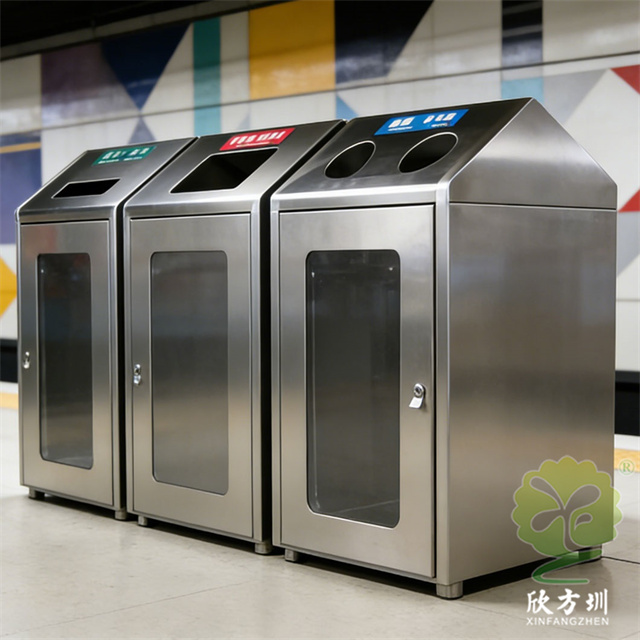 在地鐵站川流不息的人潮中,一組透明組合式三分類不銹鋼垃圾桶靜立一隅,成為現代城市文明的清晰注腳。其通體采用質感十足的不銹鋼材質,線條利落,堅固耐用。最點睛之筆在于投放口的透明設計——可回收的藍色、廚余的綠色、其他的黑色,一目了然。這不僅直觀引導乘客準確分類,更仿佛一扇扇窗口,讓環保行為變得可見、可感、可監督。它將冷峻的金屬與通透的視覺相結合,把垃圾分類的公共責任,轉化為簡潔明了的日常動作。于細微處見精神,這抹靜默的亮色,不僅是功能設施,更是城市踐行可持續發展理念的無聲宣言。