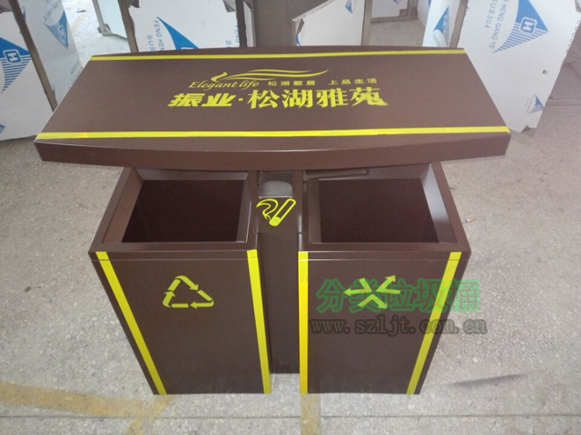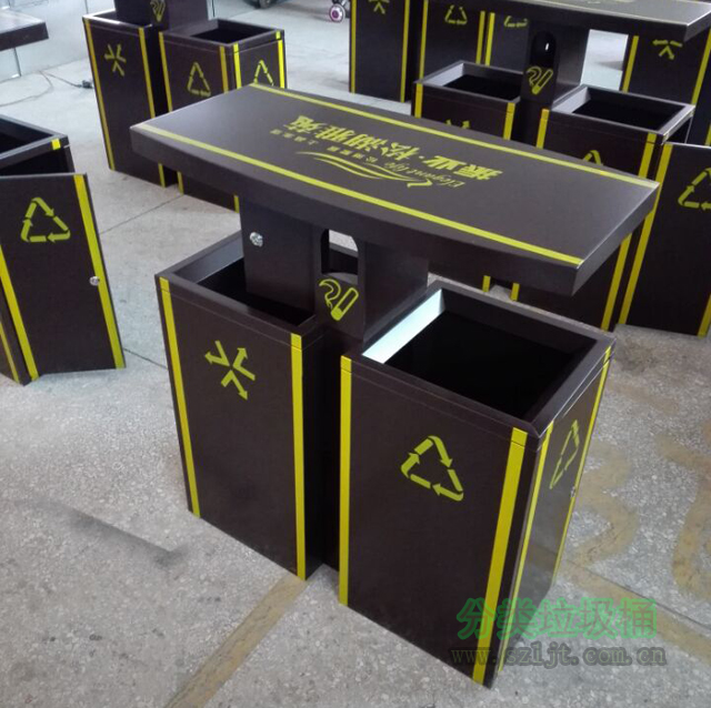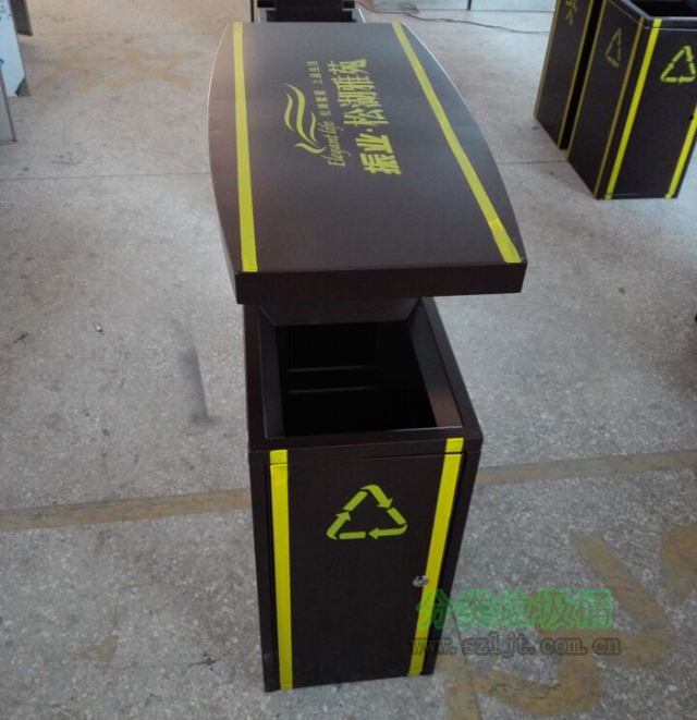隨著生活水平的提高,現在人們越來越在意身邊的東西是否美觀,如果不美觀,人們可能會感到心里不舒服。美學藝術在生活當中的應用越來越普遍,電器,建筑,服裝,食物都符合這種現象。我司生產的專門為小區居民服務的小區物業鋼制垃圾桶,恰到好處的滿足了客戶的心理需求。垃圾桶身使用褐色為底色,流露出莊嚴、肅穆、厚重、樸素的氣質,給人一安全可靠、值得信賴的感覺。桶身根據客戶需求使用黃色絲印了各種圖案,亮眼、醒目??梢杂行У奈用竦淖⒁饬Γ嬖V他們“這里有垃圾桶,請把垃圾扔過來”。雖然垃圾桶的設計很強調美觀,但是卻絲毫沒有影響垃圾桶的實用性,垃圾桶身分類兩個分類,分別是可回收垃圾,和不可以回收垃圾,配有一個煙灰盅,能有效滿足小區生活的分類回收需求。垃圾桶里面還配有內桶,方便垃圾的置換和垃圾桶的清潔,桶的頭部具有雨天防止雨水沉積于垃圾桶類的作用。