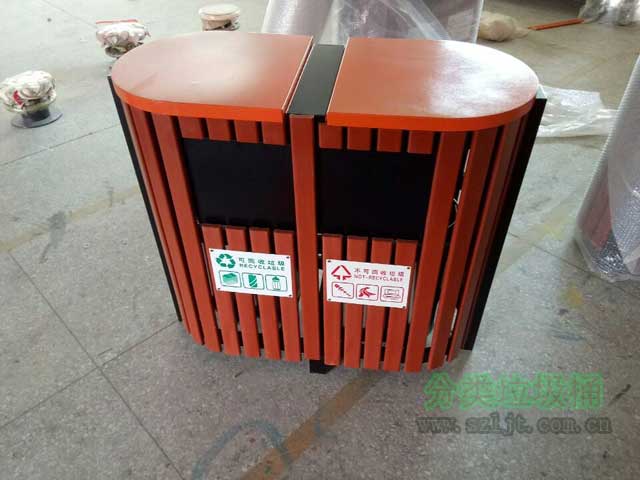 戶外精品鋼木分類垃圾桶長(zhǎng)260mm,寬260mm,高900mm,桶身采用優(yōu)質(zhì)進(jìn)口防腐木、進(jìn)口山樟木或水曲柳制作,可抑制生物、微生物的寄生、繁殖與侵蝕,延長(zhǎng)木材在戶外環(huán)境中的使用壽命。表面經(jīng)過除蟲,防蟻,防腐,烘干等專業(yè)處理后加工成型,經(jīng)久耐用,防腐美觀。桶蓋/內(nèi)膽采用FRP玻璃鋼材料制造,具有防腐、防生銹、易清潔等特點(diǎn)。底座采用玻璃鋼纖維制作,從根本上解決了防腐、防盜、生銹的問題,產(chǎn)品在戶外的使用壽命大大增強(qiáng)。此款垃圾桶無論是從外觀,性能還是環(huán)保方面來講都十分優(yōu)越,尤其適合擺放在花園,公園,小區(qū),學(xué)校,街道,游樂園等場(chǎng)所,備受客戶青睞。