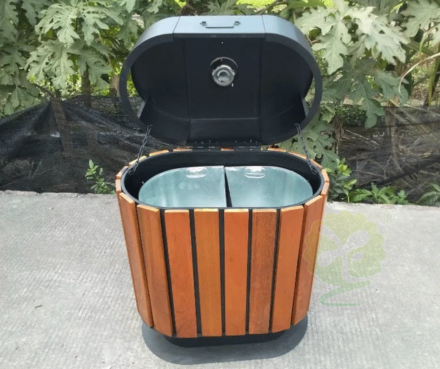一個(gè)性價(jià)比高,外形美觀的垃圾桶果皮箱,對(duì)于城市環(huán)境的清潔、垃圾的分類、資源環(huán)境的循環(huán)利用起著非常大的作用。欣方圳戶外定制鋼木垃圾桶果皮箱是一款廠家定制直銷的優(yōu)質(zhì)低價(jià)垃圾桶,非常適合于公園、景區(qū)、學(xué)校、市政街道等戶外人流量比較大的公共場(chǎng)所。它以冷軋鋼板作為結(jié)構(gòu)支撐、外表貼上經(jīng)過(guò)專業(yè)處理的防腐木材,里面使用防水防腐的鍍鋅內(nèi)桶,頂部放置滅煙盅,功能齊全,外表簡(jiǎn)潔、絲印清晰。這款垃圾桶果皮箱放置戶外非常的吸人眼球,能輕易的讓用戶找到,并讓他們按照提示自主將垃圾分類扔進(jìn)垃圾箱,促進(jìn)城市垃圾分類、資源回收政策推行,對(duì)樹立城市文明、提升城市面貌起著至關(guān)重要的作用。