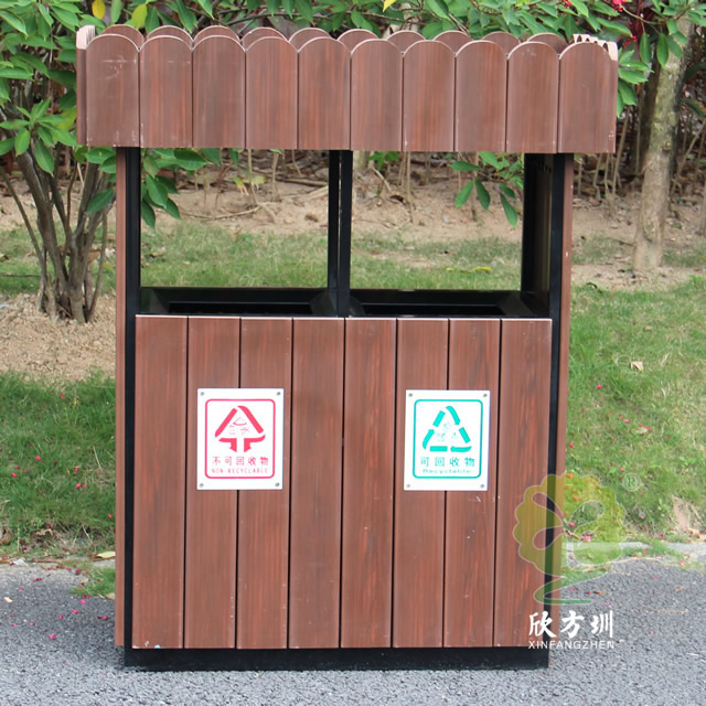 戶外防腐木帶花箱分類垃圾桶,人們對生活環境的衛生要求也越來越高,沒有人可以容忍自己家園周圍看上去臟、亂、差。整治臟、亂、差,建設衛生文明居住環境,是大部分城市的基本目標,居住環境的衛生整治離不開垃圾桶的幫助,甚至垃圾桶本身就能成為城市文明的一道亮麗風景線。沒有人愿意親近一個看上去布滿污漬,臟兮兮,充滿細菌的垃圾桶,而一個看上去干凈、衛生、美觀的垃圾桶,除了人們更愿意往里面投垃圾外,本身就能起到裝飾美化的作用。