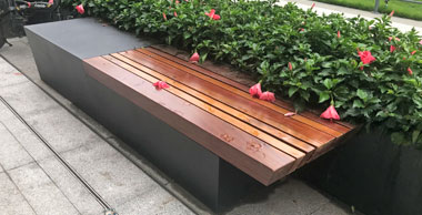 戶外三角形烤漆鏤空不銹鋼防腐木園林椅坐凳