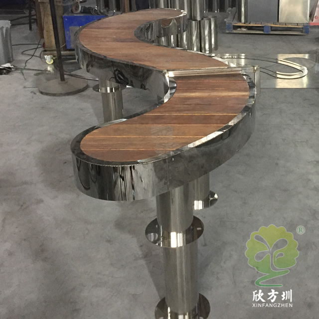 戶外大型S形不銹鋼休閑椅采用不銹鋼板材和山樟木制作而成,我們嚴格把握各個工藝環(huán)節(jié),外觀簡約,線條優(yōu)雅,時尚簡約,防腐防銹,適用于廣場,商場,公園,景區(qū),街道,商業(yè)街,道路等公共場所。