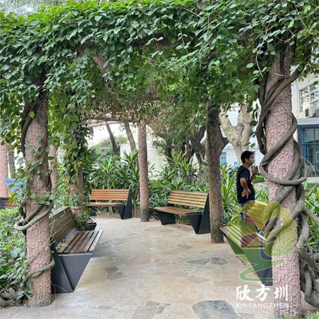 不銹鋼座椅公園椅:整體外觀和普通的公園椅座椅一樣,但是該公園椅座椅的椅條由防腐木換成了等長的不銹鋼鋼柱,帶有靠背設計,整體框架采用一體化焊接技術,美觀又耐用。
